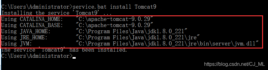 注意一點(diǎn),不要以為最下面一句The service ‘……' has been installed。出現(xiàn)就算是好了,上圖框起來的地方路徑必須得有,否則會出問題,咱就是吃了這個虧啊。