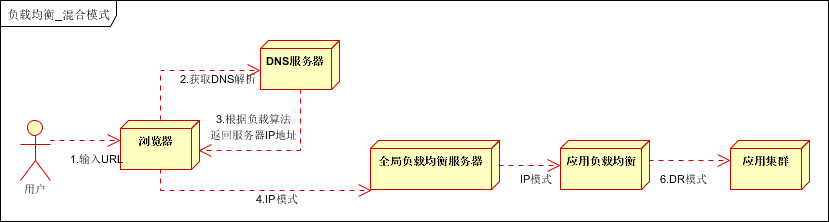 以上模式適合有動靜分離的場景,反向代理服務器(集群)可以起到緩存和動態(tài)請求分發(fā)的作用,當時靜態(tài)資源緩存在代理服務器時,則直接返回到瀏覽器。如果動態(tài)頁面則請求后面的應用負載均衡。