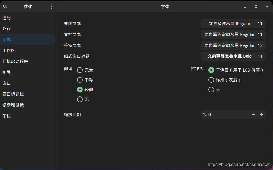安裝后,直接在 gnome-tweak-tool 開(kāi)啟即可