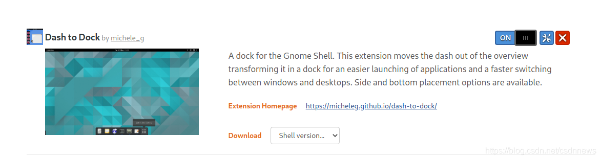 安裝對(duì)應(yīng)的擴(kuò)展,打開(kāi) https://extensions.gnome.org/extension/307/dash-to-dock/ ,由于你已經(jīng)安裝了 chrome-gnome-shell 所以開(kāi)啟后會(huì)自動(dòng)安裝