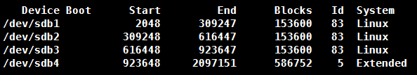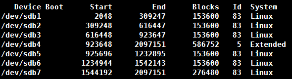此時(shí)輸入n,會(huì)直接創(chuàng)建邏輯分區(qū),區(qū)號(hào)從5開始sdb5