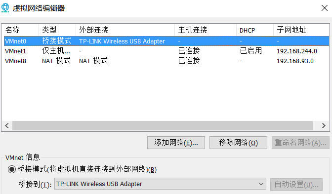 選擇VMnet0(這是橋接模式的虛擬網(wǎng)卡,在物理主機的網(wǎng)絡(luò)適配器那里只顯示1和8),橋接到那里選擇自己正常上網(wǎng)使用的網(wǎng)卡。
