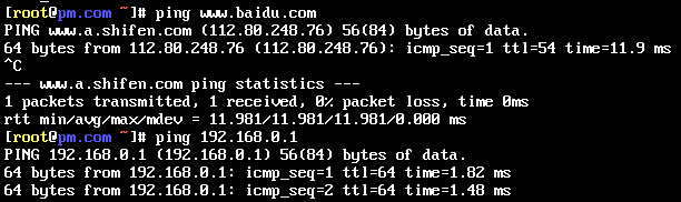 重啟網(wǎng)卡并測試,可以ping通外網(wǎng)。