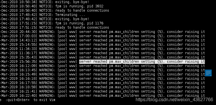如果發(fā)現(xiàn)php-fpm進程數(shù)已經(jīng)達到最大的進程數(shù),查看php-fpm配置文件,可以看到錯誤信息
