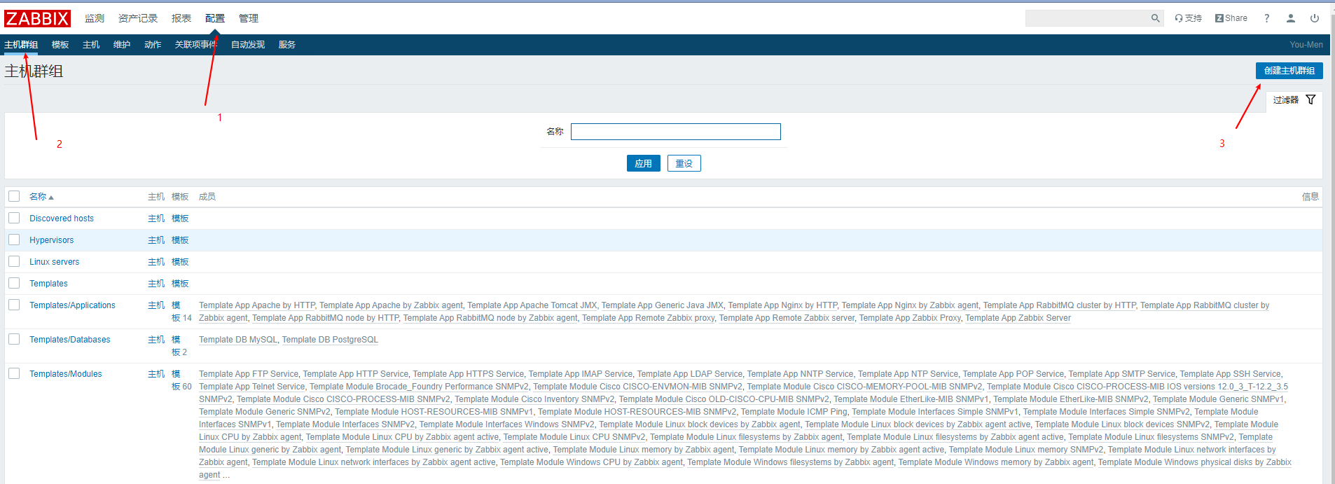 yum -y instlal yum-utils # 下載到指定目錄 yum install zabbix-agent -y --downloadonly --downloaddir=/root 1.安裝zabbix agent # 方法一(國(guó)外源zabbix好像下載不下來(lái)包了,用上面的源): # rpm -Uvh https://repo.zabbix.com/zabbix/4.4/rhel/7/x86_64/zabbix-release-4.4-1.el7.noarch.rpm yum clean all yum -y install zabbix-agent # 方法二:(使用別的機(jī)器傳過(guò)來(lái)的zabbix-agent包直接rpm安裝即可) rpm -ivh zabbix-agent-4.4.1-1.el7.x86_64.rpm # 修改zabbix-agent配置并啟動(dòng)服務(wù) vim /etc/zabbix/zabbix_agentd.conf Server=192.168.244.144 Server=192.168.244.144 //監(jiān)控主機(jī)IP地址 Hostname=agent1.zabbix.com //被監(jiān)控主機(jī)到監(jiān)控主機(jī)的名字 UnsafeUserParameters=1 systemctl start zabbix-agent ss -antp |grep 10050 # 接下來(lái)我們到web端進(jìn)行操作 # 為了服務(wù)方便管理和易于查看。 # 監(jiān)控系統(tǒng)中往往根據(jù)被監(jiān)控的主機(jī)角色或其他屬性將同類主機(jī)劃分到同一個(gè)主機(jī)組中.
