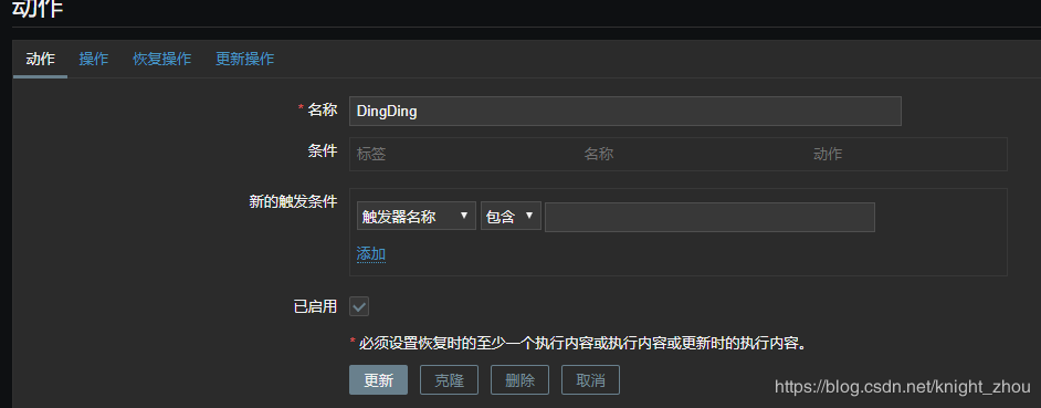 配置--->動(dòng)作--->創(chuàng)建動(dòng)作,把微信告警或者郵件告警的“操作”和恢復(fù)操作內(nèi)容拷貝過來即可。