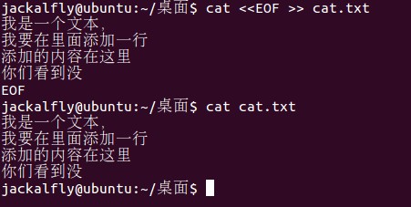 (3)、cat>filename<<EOF,以EOF作為輸入結(jié)束,和ctrl+d的作用一樣: