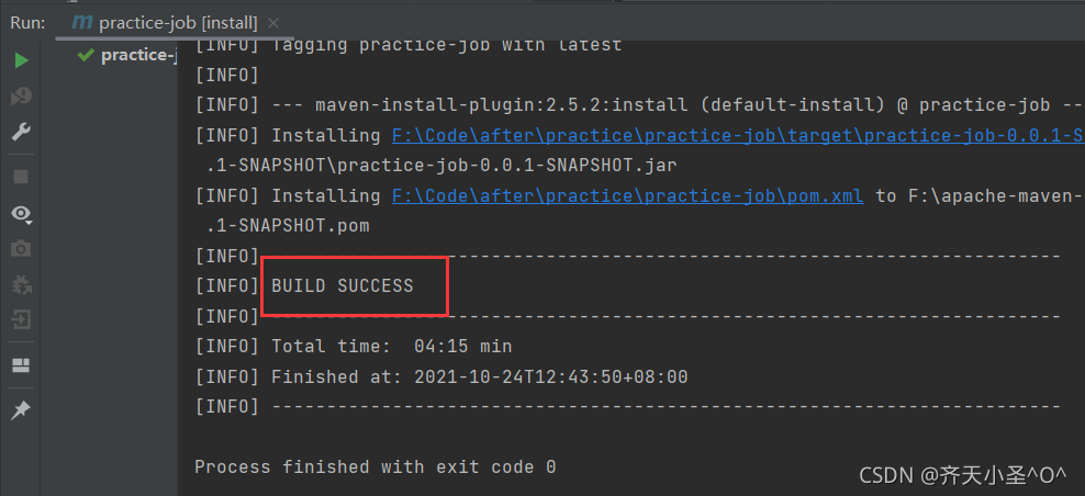 上述準備就緒以后執(zhí)行install命令,等待一段時間后下方控制臺出現BUILD SUCCESS則說明鏡像推送成功。