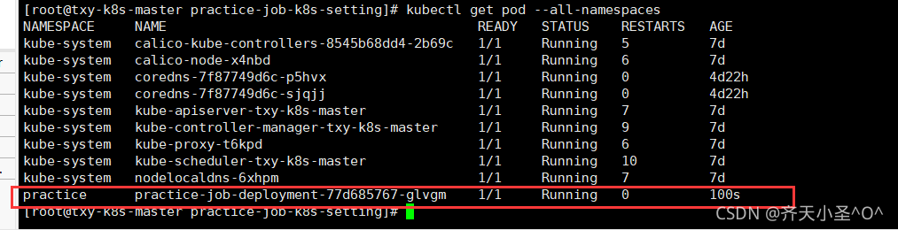 執(zhí)行命令:kubectl get pod --all-namespaces 查看pod,可以看到我們項目的pod已經成功運行。