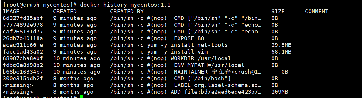 在這里也可以看出來(lái),鏡像它是由Dockerfile文件中的指令,一層一層構(gòu)建出來(lái)的。