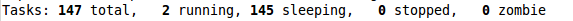 第二行顯示的是任務(wù)或者進(jìn)程的總結(jié)。進(jìn)程可以處于不同的狀態(tài)。這里顯示了全部進(jìn)程的數(shù)量。除此之外,還有正在運行、睡眠、停止、僵尸進(jìn)程的數(shù)量(僵尸是一種進(jìn)程的狀態(tài))。這些進(jìn)程概括信息可以用't'切換顯示。