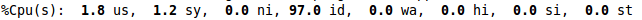 下一行顯示的是CPU狀態(tài)。 這里顯示了不同模式下的所占CPU時間的百分比。這些不同的CPU時間表示: