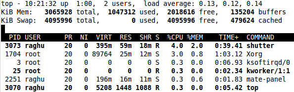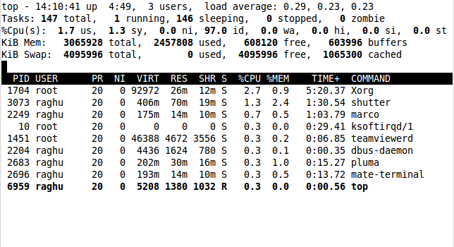 $ top -p 28453 -u raghu