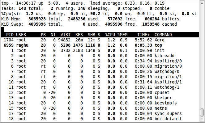 我們之前說過top是一個交互命令。上一節(jié)我們已經(jīng)遇到了一些命令。這里我們會探索更多的命令。