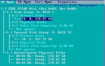 4) 確認(rèn)點(diǎn)擊OK后,返回VD Mgnt界面,即可看到RAID10的獨(dú)立熱備盤設(shè)置完畢,如圖3-8所示: