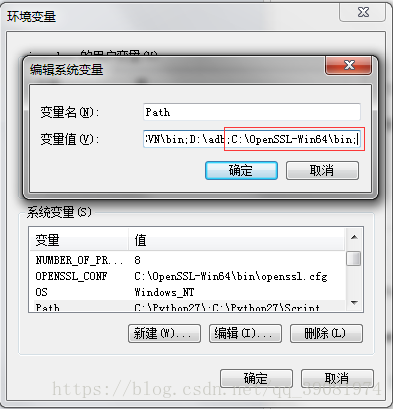 2.2 設(shè)置環(huán)境變量,例如工具安裝在C:\OpenSSL-Win64,則將C:\OpenSSL-Win64\bin;復(fù)制到Path中