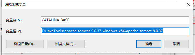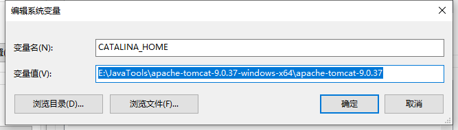 變量值:E:\JavaTools\apache-tomcat-9.0.37-windows-x64\apache-tomcat-9.0.37 //Tomcat安裝目錄