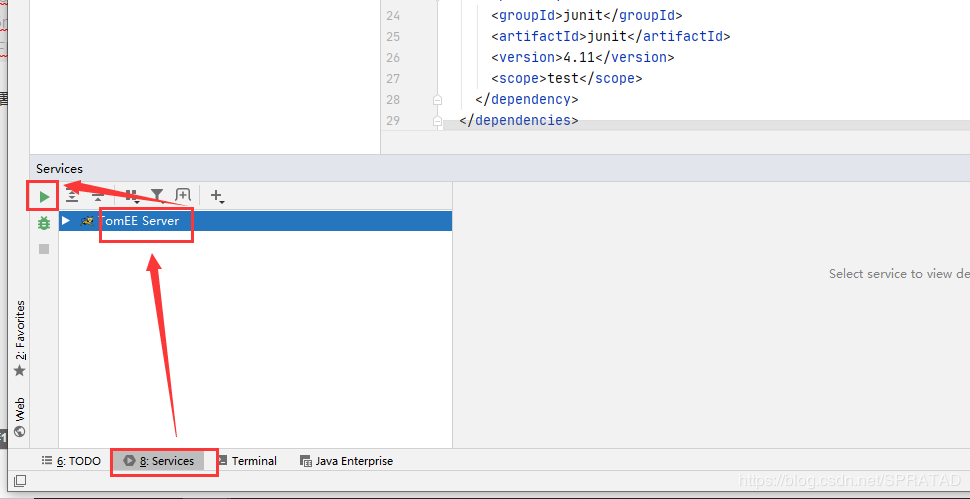 點擊左側(cè)綠色三角形就可以運行 Tomcat 服務(wù)器(這里有點錯誤 應(yīng)該是選Tomcat 我選成了TomEE )