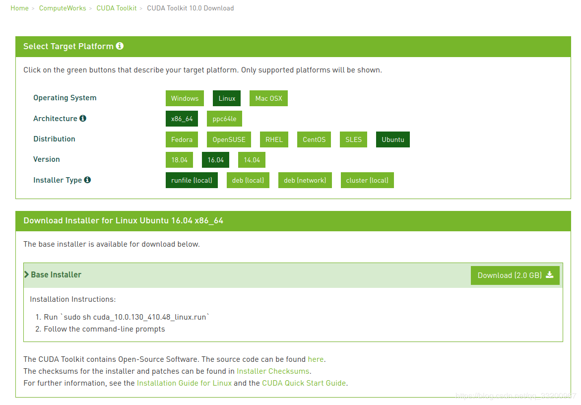 我們可以在官網(wǎng):CUDA10下載頁面,