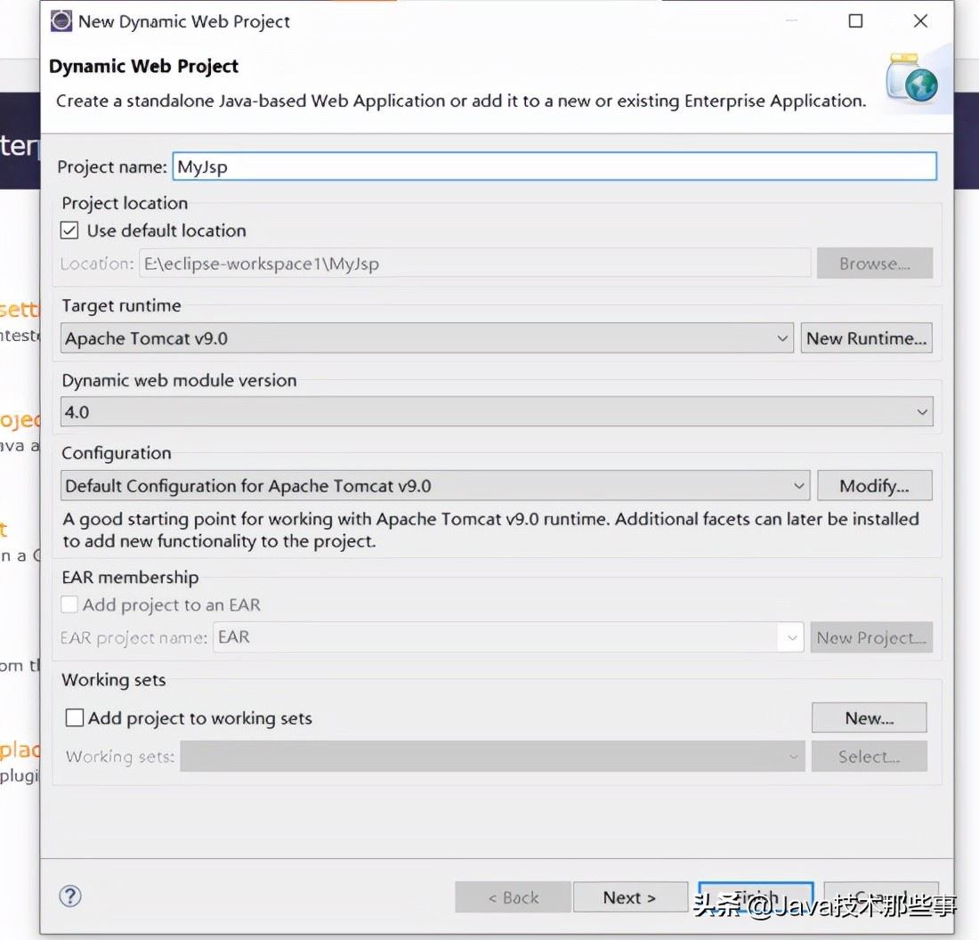 創(chuàng)建項目中target runtime是選擇服務(wù)器,有了前面的操作,就可以選擇我們配置的服務(wù)器了,否則只能是null