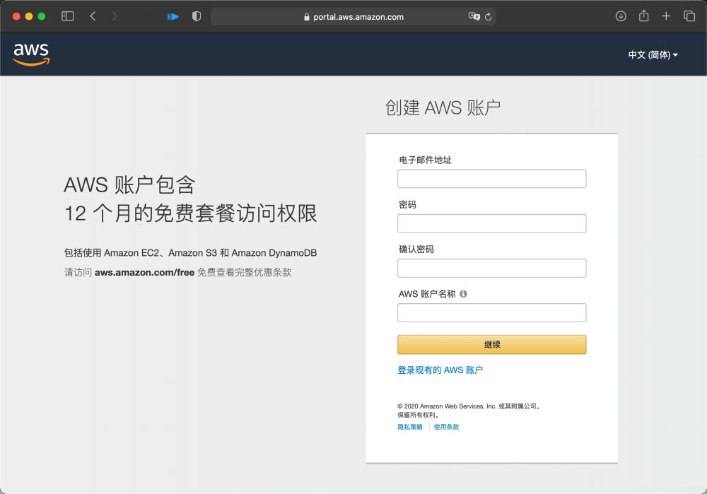 注冊:https://portal.aws.amazon.com/billing/signup?nc2=h_ct&src=default&redirect_url=https%3A%2F%2Faws.amazon.com%2Fregistration-confirmation&language=zh_cn#/start