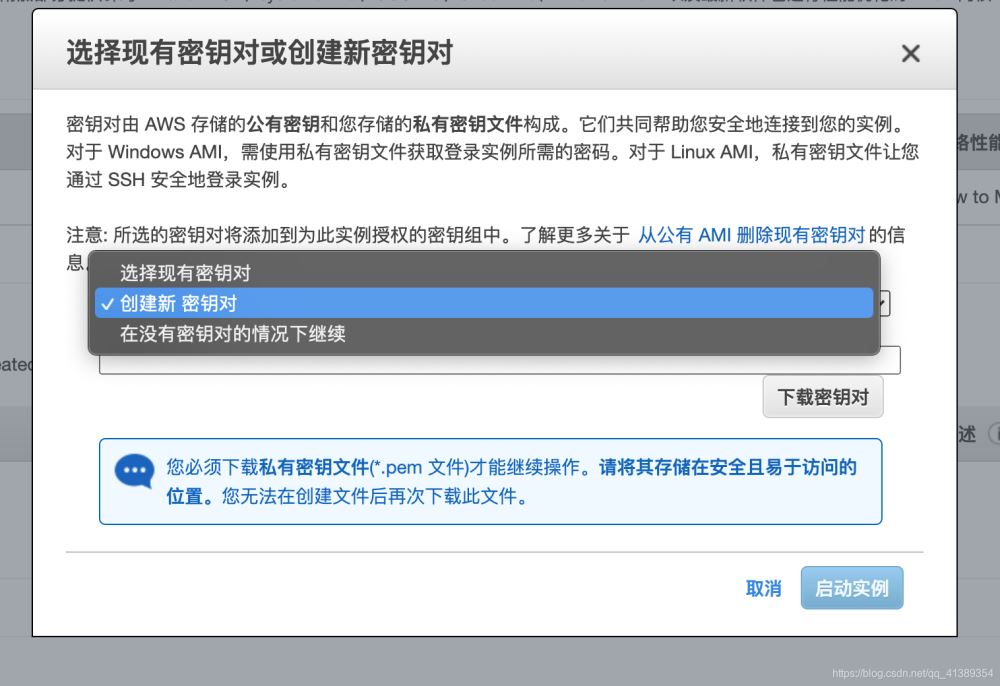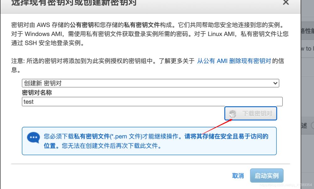 創(chuàng)建完就下載它,然后點擊啟動實例