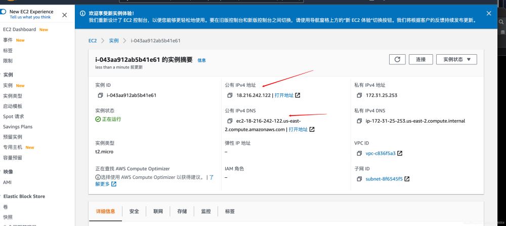 可以在控制臺看到這臺服務器,再次點擊實例的ID