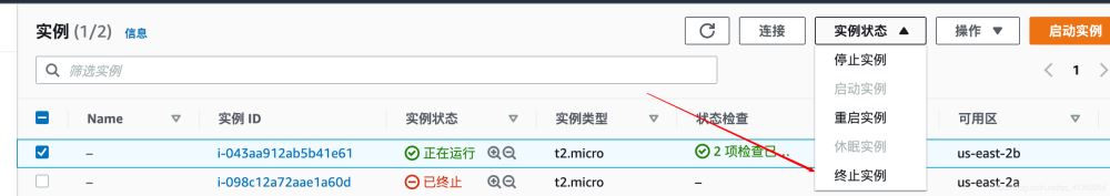 在控制臺選中實例,點擊實例狀態(tài)->終止實例