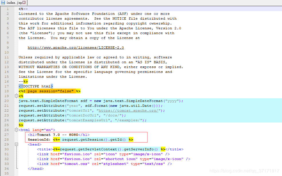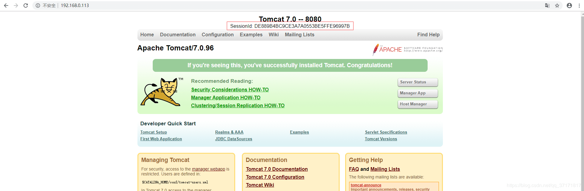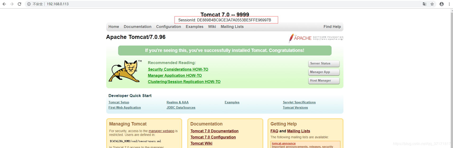 在Tomcat啟動(dòng)頁面加上標(biāo)識(shí),判斷兩臺(tái)服務(wù)器中sessionId是否一致。