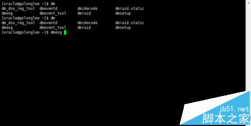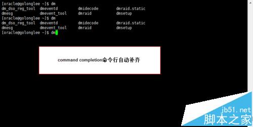 Linux有命令行自動補(bǔ)齊功能,輸入命令行的前面幾個字符可以連續(xù)按下2次tab鍵或者Esc鍵給出提示,如果只有以首字母開始的唯一一個命令,則系統(tǒng)會自動補(bǔ)齊,例如輸入dm,按下2次tab鍵或者2次Esc鍵,效果如下