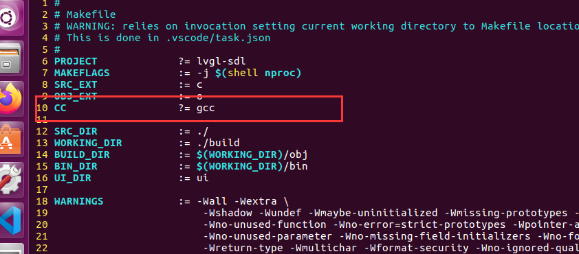 根據(jù)提示分析錯誤,其中 cc: error 提示報錯,翻到 Makefile 一看屬于 gcc 編譯器