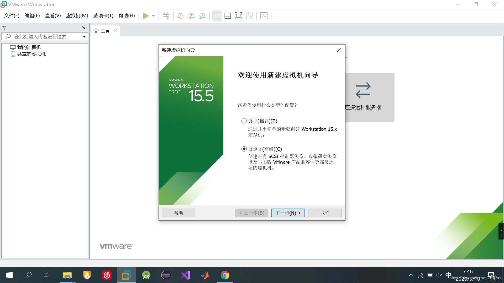2、如下所示,選擇“自定義”,這樣可以手動(dòng)配置一些安裝選項(xiàng)