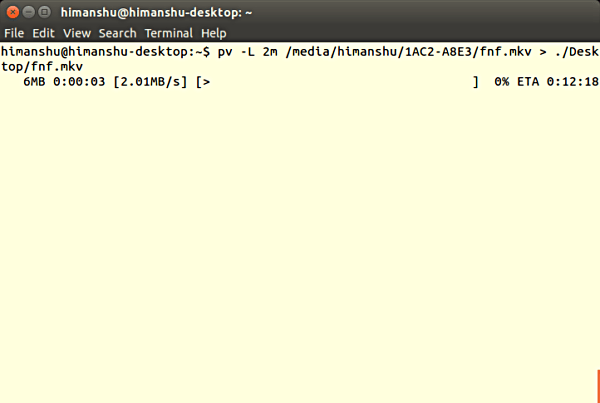 pv -L 2m /media/himanshu/1AC2-A8E3/fNf.mkv > ./Desktop/fnf.mkv