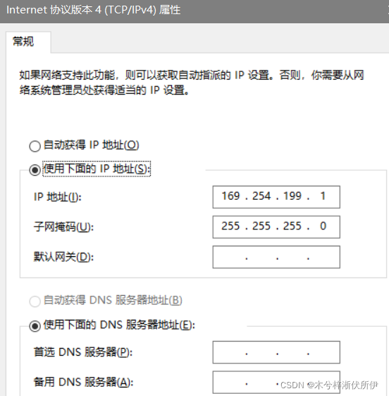 第一處填的ip 地址,要和上面win10主機(jī)配置的一致。第四個(gè)字段填0,否則和掩碼沖突。 子網(wǎng)網(wǎng)關(guān)(DNS)的第四個(gè)字段填1,2都行。
