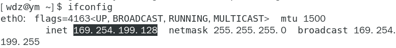 如果沒(méi)有填ipaddr,系統(tǒng)會(huì)默認(rèn)分配,ipaddr=169.254.199.128 ,這是DHCP分配的的。