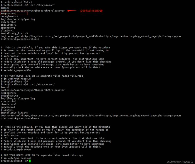 vi /etc/yum.conf keepcache =1 # 修改為1