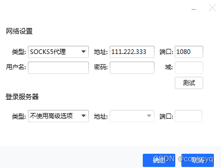 你可以在里面設(shè)置 socks 類型并寫上代理地址及端口號,這樣 qq 產(chǎn)生的數(shù)據(jù)就會通過對應(yīng)的 111.222.333:1080 轉(zhuǎn)發(fā)出去