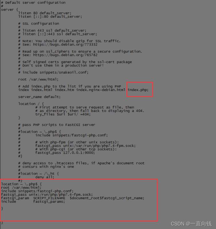 找到nginx配制文件,如圖下添加配制(截圖畫出來(lái)的),我的配制文件位置是/etc/nginx/sites-available/default