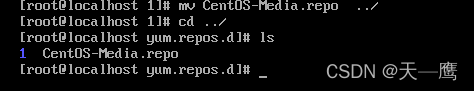 ?4.在創(chuàng)造的目錄中將CentOS-Media.repo移動(dòng)到y(tǒng)um源的配置文件中并查看(用mv指令)