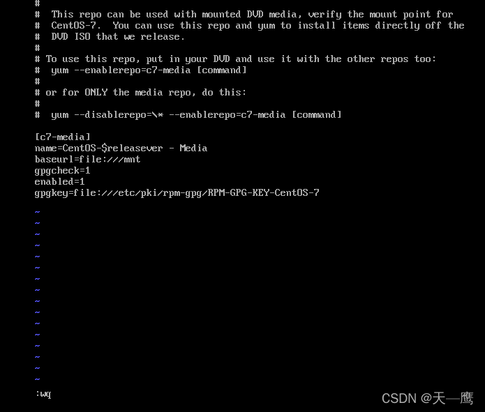 5. 編輯CentOS-Media.repo(具體編輯地方如下)