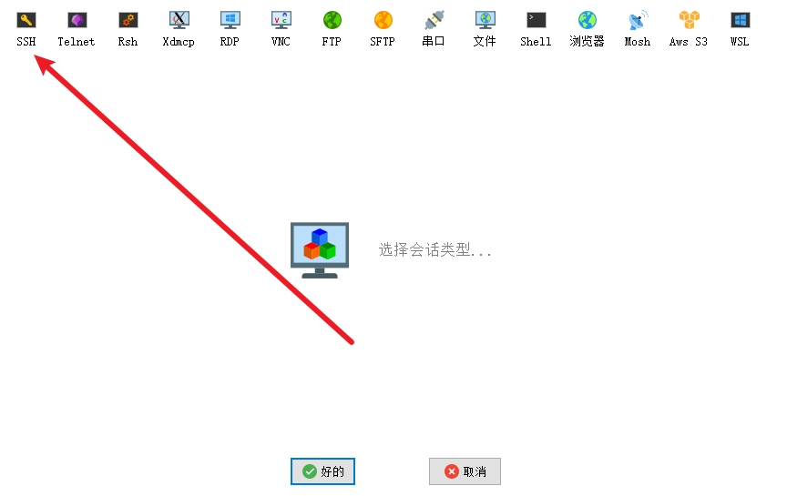 選擇會(huì)話類型(支持多種),這里我們選擇SSH