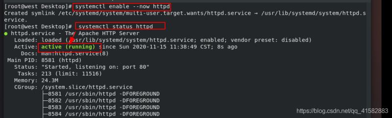 systemctl enable --nowhttpd - 查看apache服務的狀態(tài):