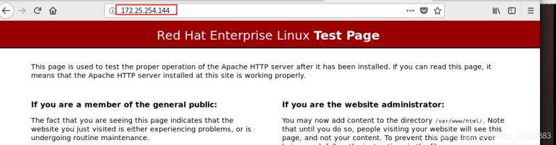 systemctl restart httpd - 測試:瀏覽器中輸入http://172.25.254.144, 看到的是/westos/html/目錄內(nèi)的默認發(fā)布文件