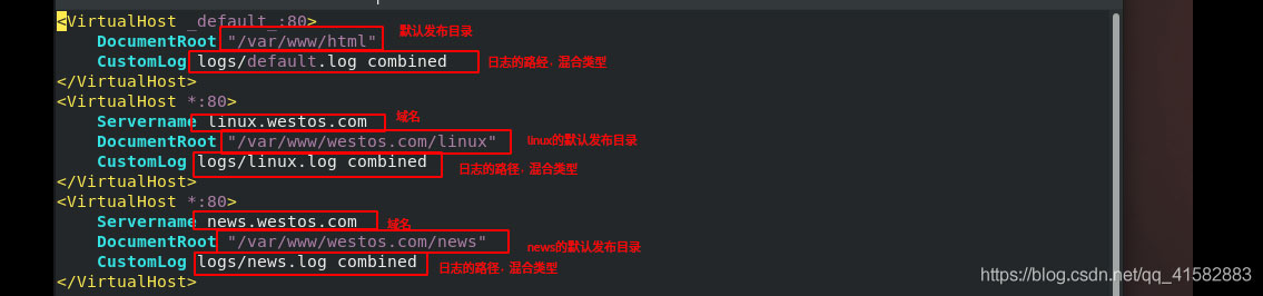 編輯虛擬主機的配置文件:vim /etc/httpd/conf.d/vhost.conf