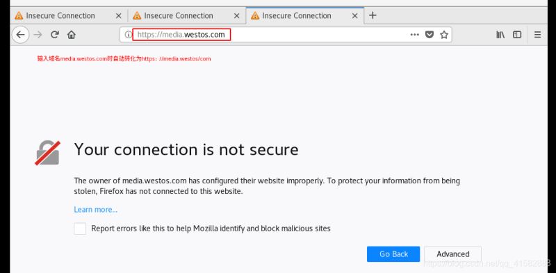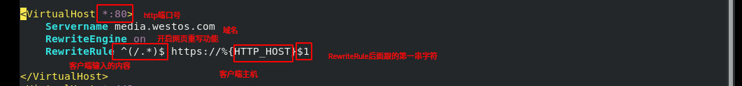 - 如果要使輸入media.westos.com后跳轉到https://media.westos.com,可以通過網(wǎng)頁重寫實現(xiàn),也就是當訪問http(80端口)時自動跳轉到https(443端口)