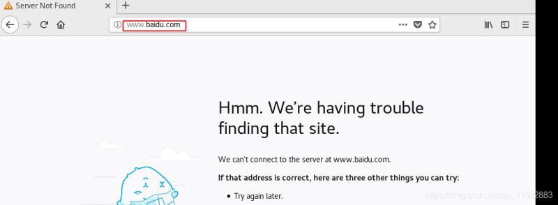 (2)客戶端:在不能上網(wǎng)的主上測試,在瀏覽器中輸入:www.baidu.com不能訪問
