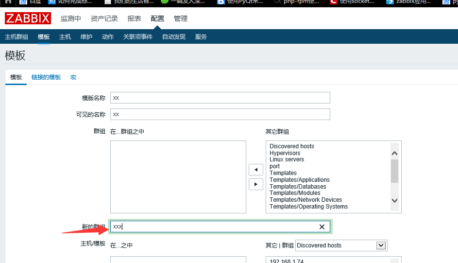 1.創(chuàng)建模板,模板名稱用來表示,這里監(jiān)控端口,取名為Port,模板必須加入某群組,可單獨創(chuàng)建群組來區(qū)分。