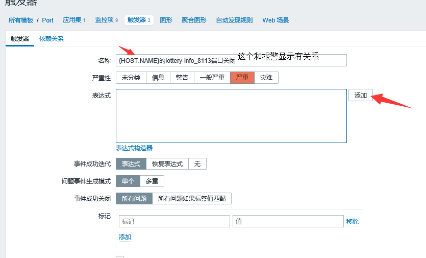 鍵值是找不到的,手動寫上,觸發(fā)器的表達式也是連接這個監(jiān)控項。