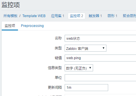 web.ping是自定義的鍵值名字,后面是腳本路徑vim /etc/zabbix/zabbix_agentd.d/web_status.conf