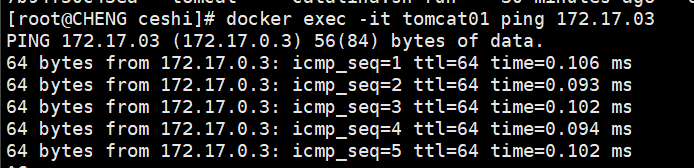 測(cè)試容器tomcat01和tomcat02是否能ping通: